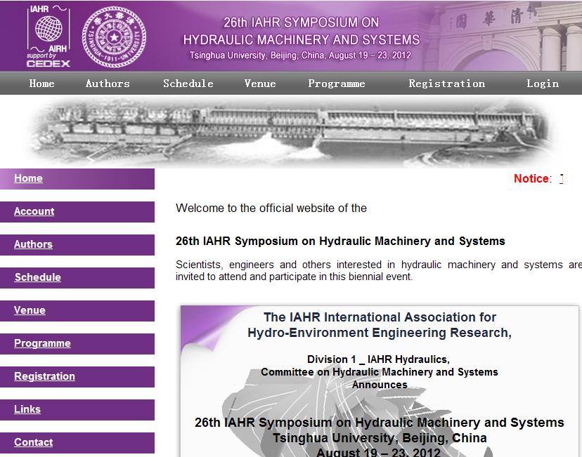 案例(云会议管理与营销):第26届IAHR国际会议网站,清华大学