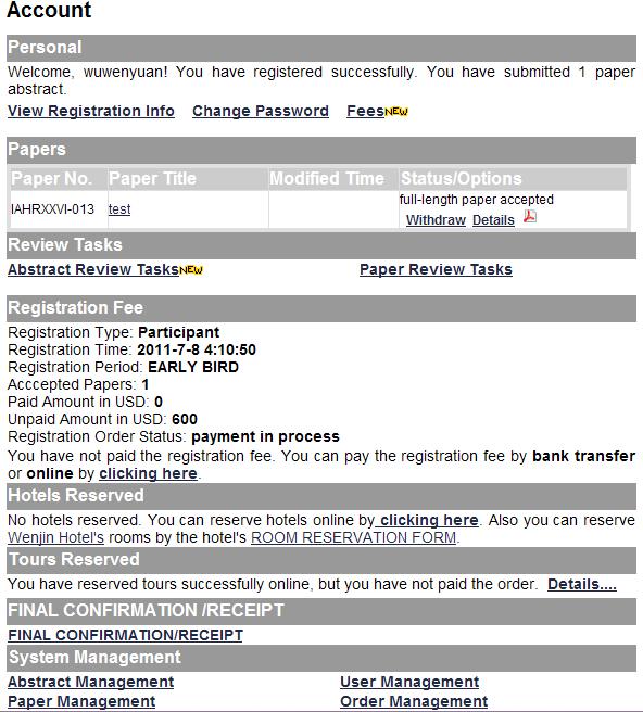 2011年7月,公司与清华大学热能工程系流体机械及工程研究所(http://www.te.tsinghua.edu.cn/)达成服务协议,为其建设26iahr国际会议网站系统(www.26iahr.org),系统核心组成部分包括会议宣传和介绍页面设计、与会者管理、论文管理、酒店预订、旅游预订、在线支付系统等。