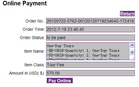 在线支付功能展示如下: